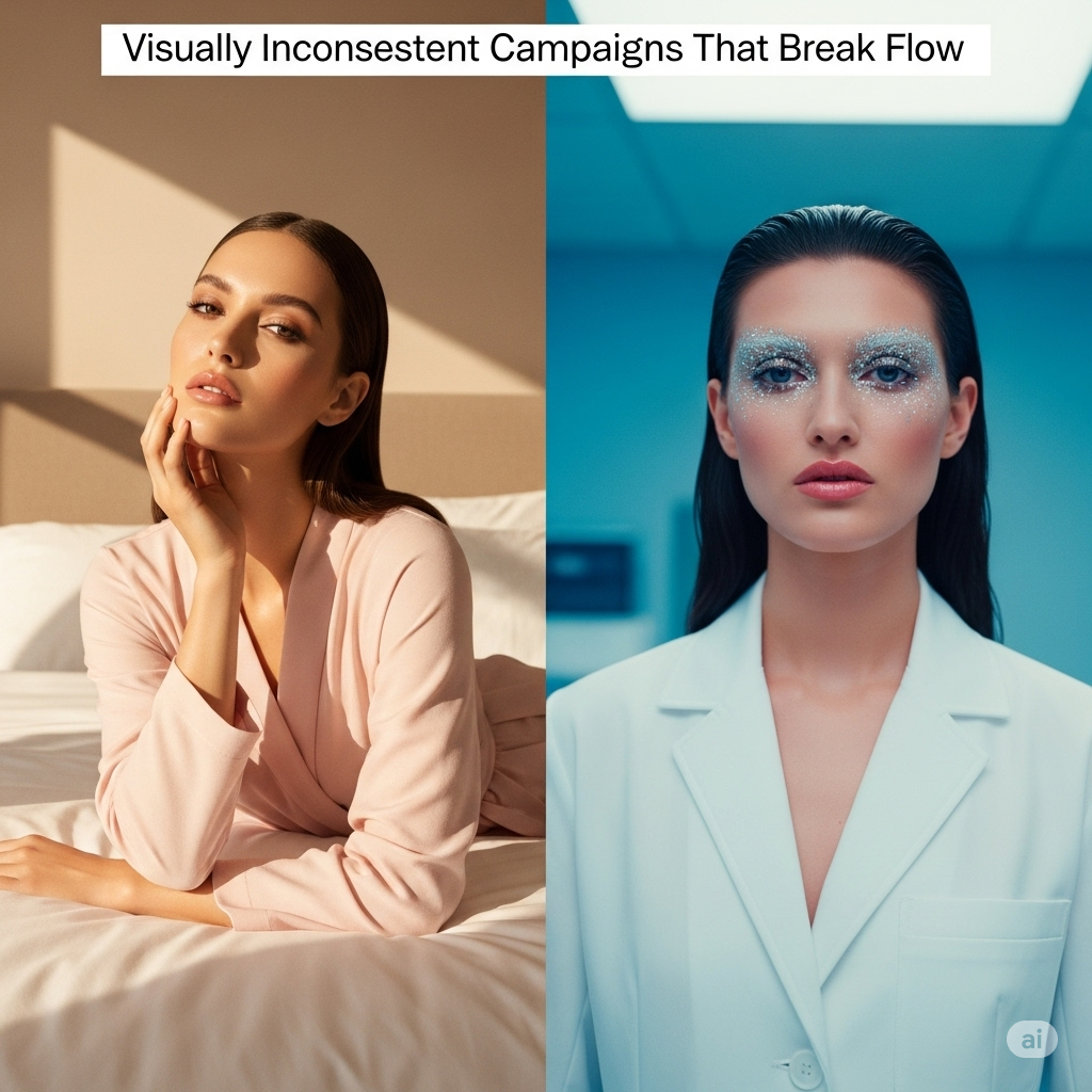 This one stings because it’s sneaky. You might have strong individual creatives an eye close-up, a clean unboxing shot, a 3-second texture loop but if they don’t connect, your audience loses trust, and your funnel loses heat.
